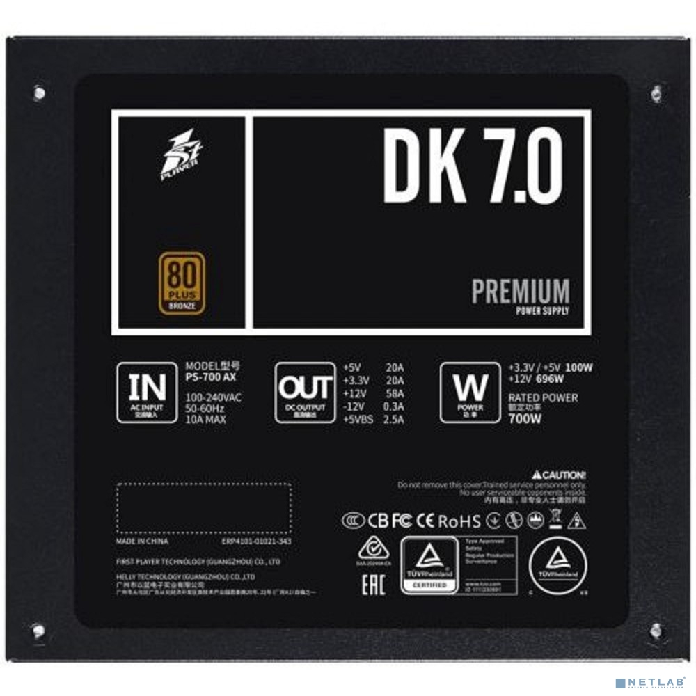 1STPLAYER Блок питания DK PREMIUM 700W / ATX 2.4, APFC, 80 PLUS BRONZE, 120mm fan / PS-700AX