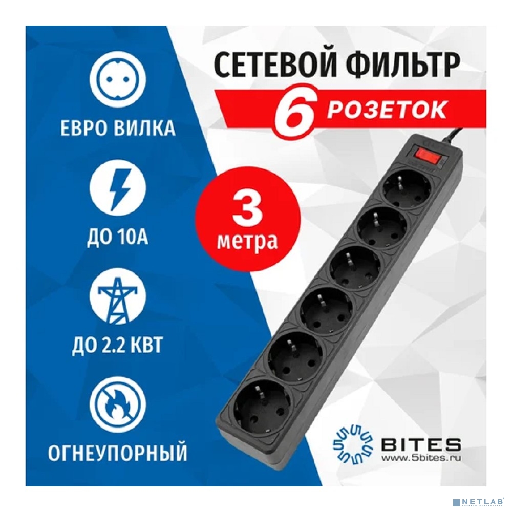 5bites Сетевой фильтр GARDA SP6B-530 6S / 3*0.75MM2 / 3M / BLACK