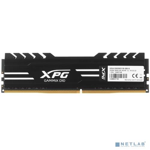 A-data DDR4 8GB XPG GAMMIX D10, 3600MHz CL18-22-22, 1.35V, Черный Радиатор