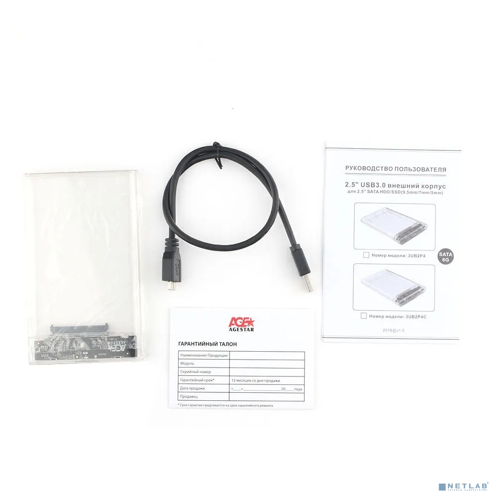 AgeStar 3UB2P4 (TRANSPARENCY)USB 3.0 Внешний корпус 2.5" SATAIII HDD/SSD пластик, прозрачный {50} (672691)(17312)