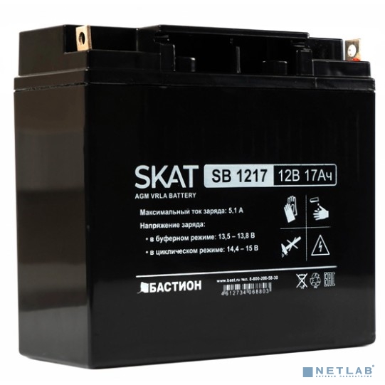 АКБ БАСТИОН SKAT SB 1217 AGM 12V 17Ач I зар.5,1А, B1 (под болт М5), гарантия 18 мес (2536)
