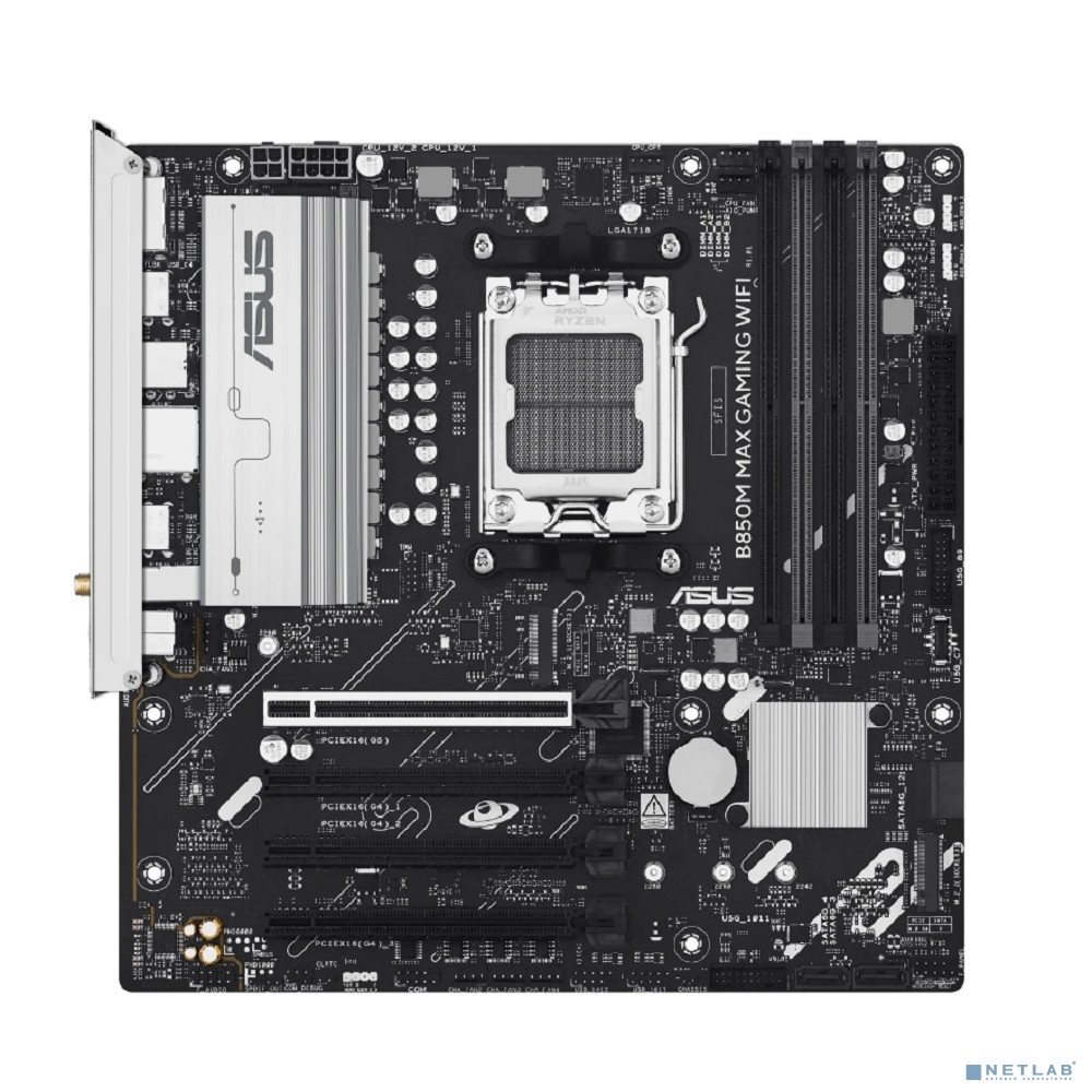 ASUS B850M MAX GAMING WIFI (Socket AM5, mATX, 4xDDR5(256GB), DP/HDMI, 1xPCIe 5.0x16/1xPCIe 4.0, 1xLAN(5GbE), Wi-Fi 6, 4xSATA 6Gb/s, 2xM.2, 2xType-C, 3xUSB 3.2, 2xUSB 2.0)
