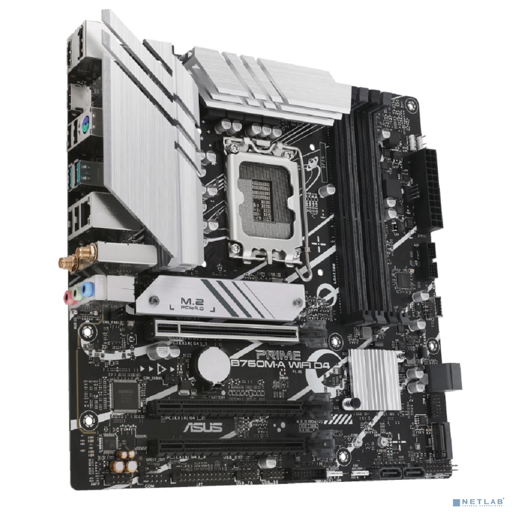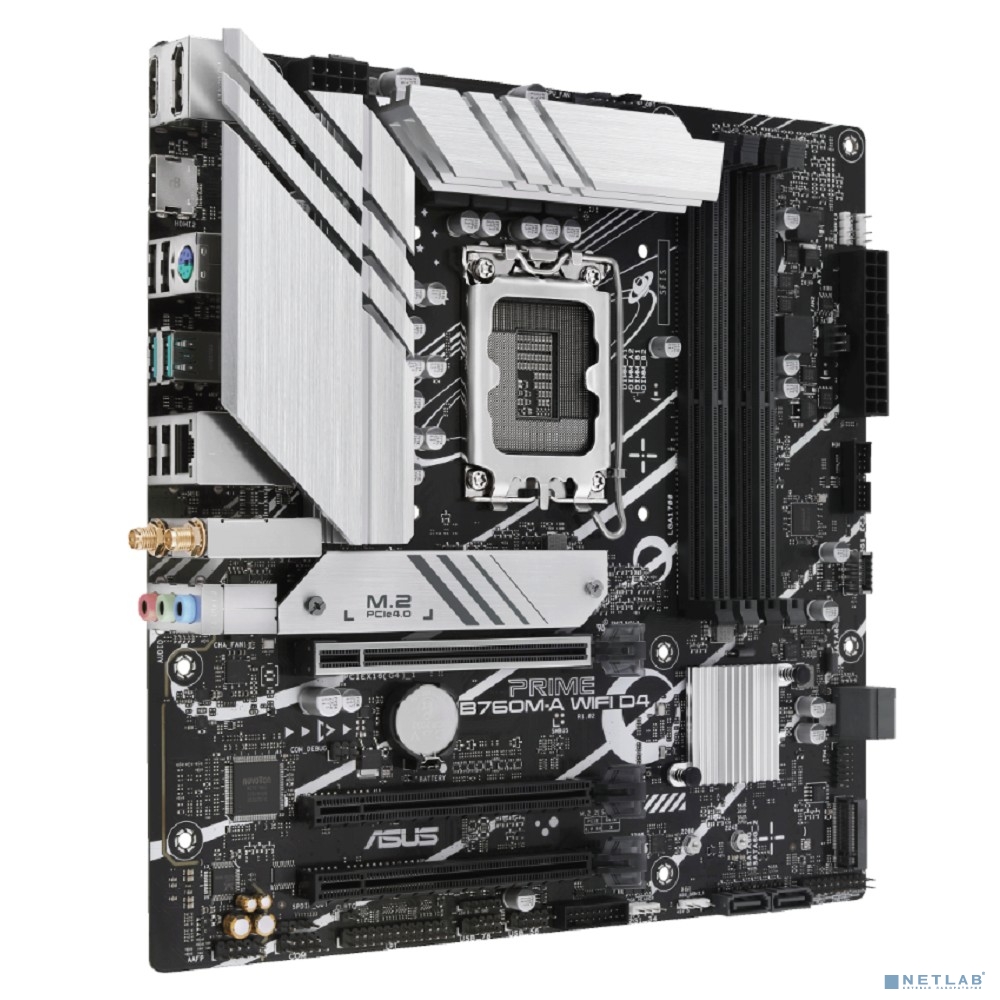 ASUS PRIME B760M-A WIFI D4 (Socket 1700, mATX, 4xDDR4(128GB), DP/2xHDMI 2.1, 3xPCIe 4.0x16, 1xLAN (2.5GbE), Wi-Fi, BT, 4xSATA 6Gb/s, 2xM.2, 2xUSB 3.2, 4xUSB 2.0, 1xPS/2)