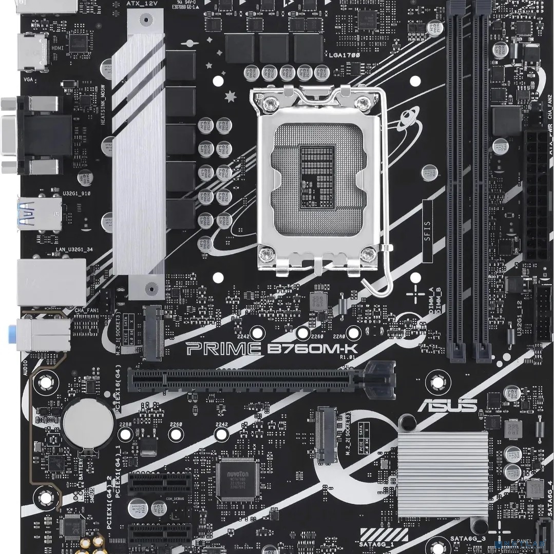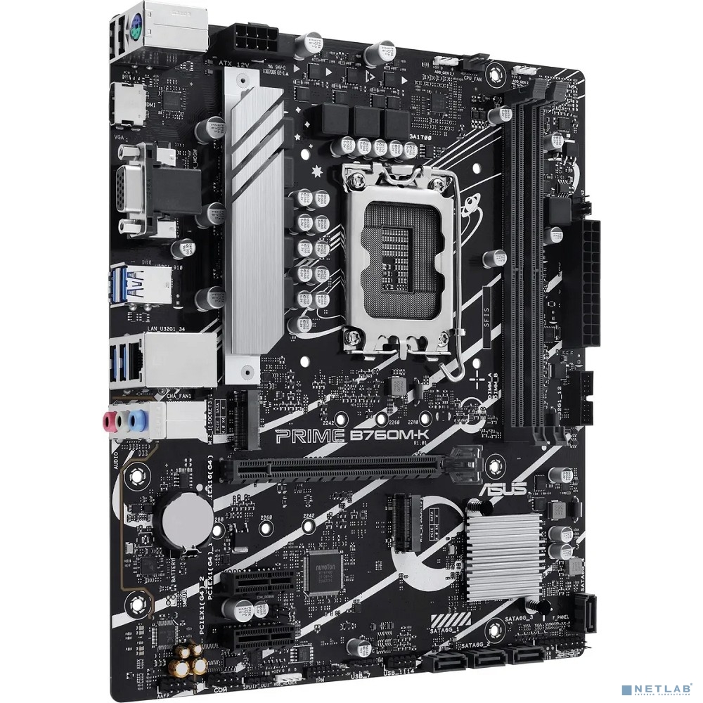 ASUS PRIME B760M-K (Socket 1700, mATX, 2xDDR5(96GB), VGA/HDMI 2.1, 1xPCIe 4.0x16/2xPCIe 4.0, 1xLAN (2.5GbE), 4xSATA 6Gb/s, 2xM.2, 4xUSB 3.2, 2xUSB 2.0, 1xPS/2)