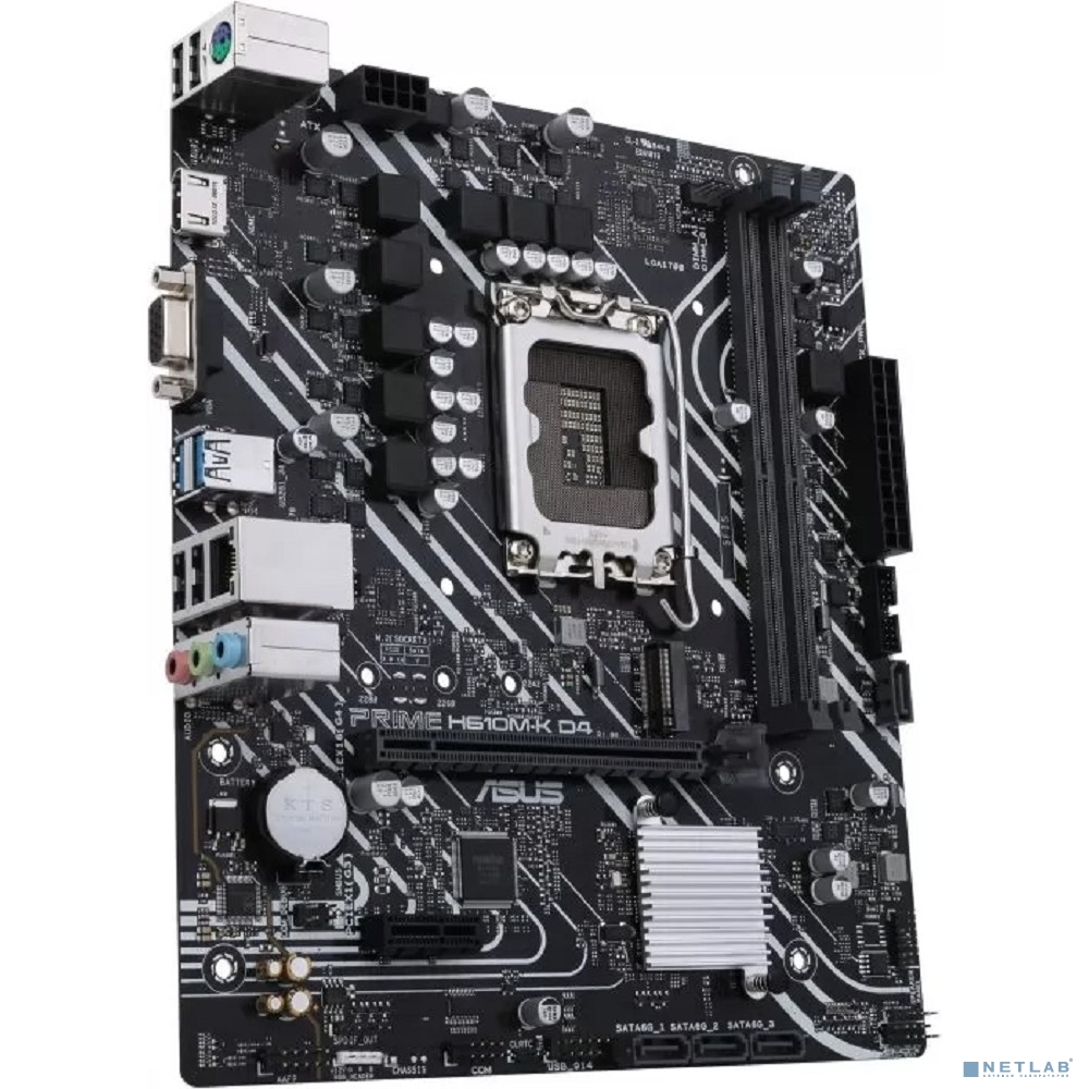 ASUS PRIME H610M-K D4 (Socket 1700, mATX, 2xDDR4(64GB), VGA/HDMI 2.1, 1xPCIe 4.0x16/1xPCIe 3.0/1xLAN, 4xSATA 6Gb/s, 1xM.2, 2xUSB 3.2, 4xUSB 2.0, 1xPS/2)