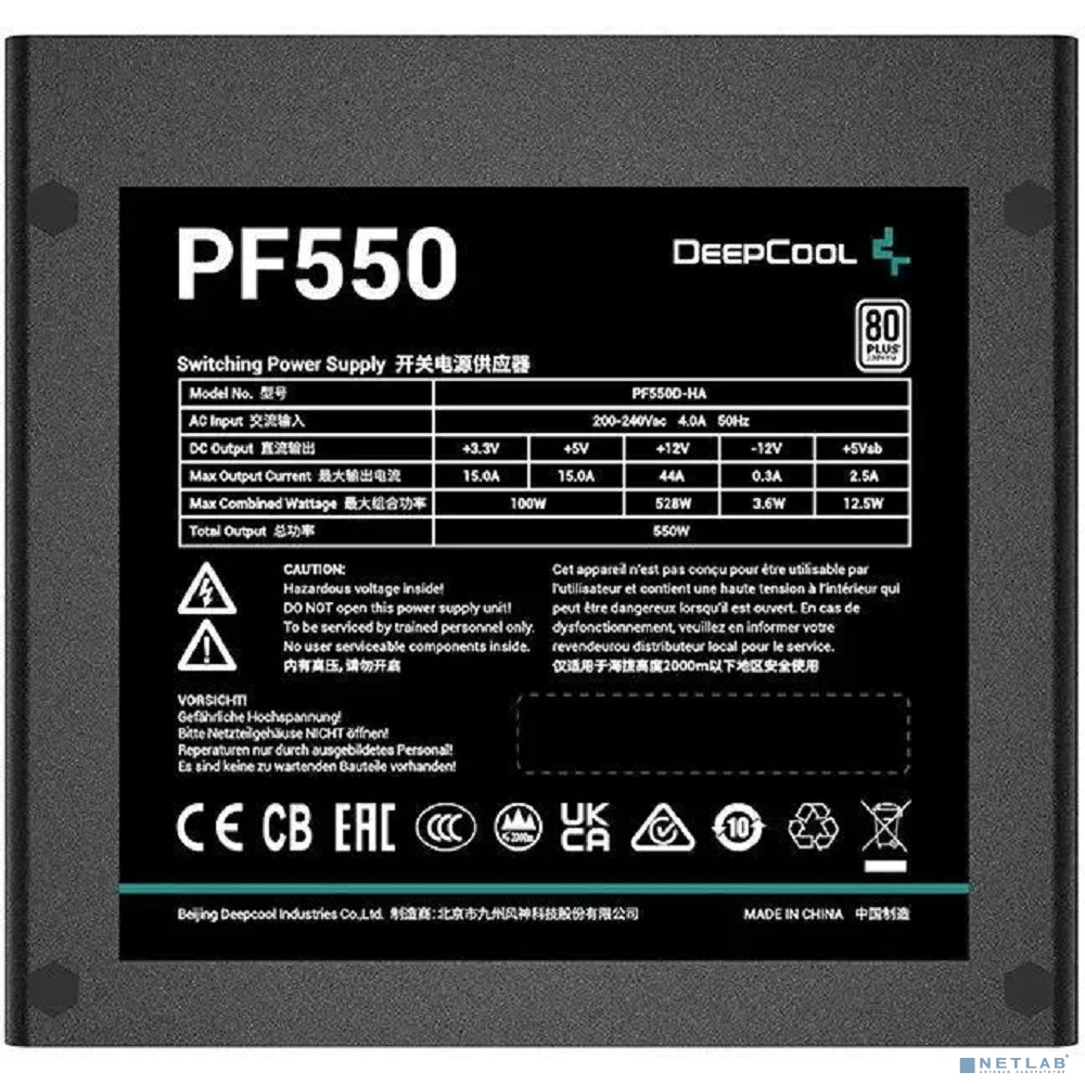 Блок питания Deepcool ATX 550W PF550 80 PLUS (20+4pin) APFC 120mm fan 6xSATA RTL