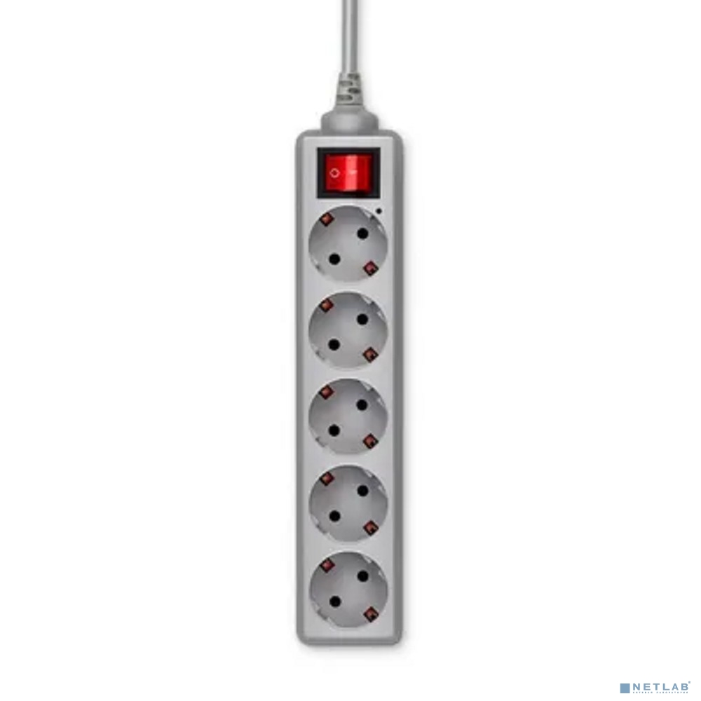 BURO Сетевой фильтр, 5 розеток, 3 метра, (500SL-3-G), серый (пакет ПЭ)