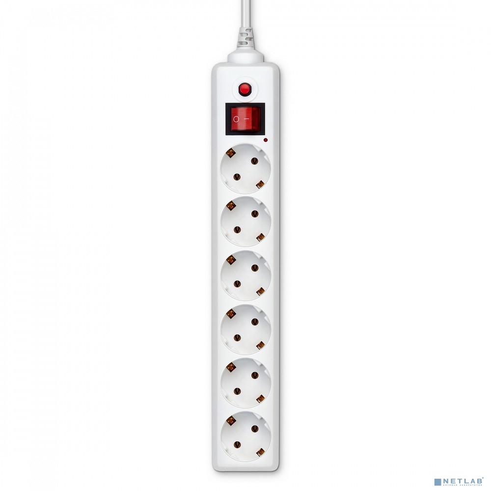 BURO Сетевой фильтр, 6 розеток, 1.8 метра, (600SH-1.8-W), белый (коробка)