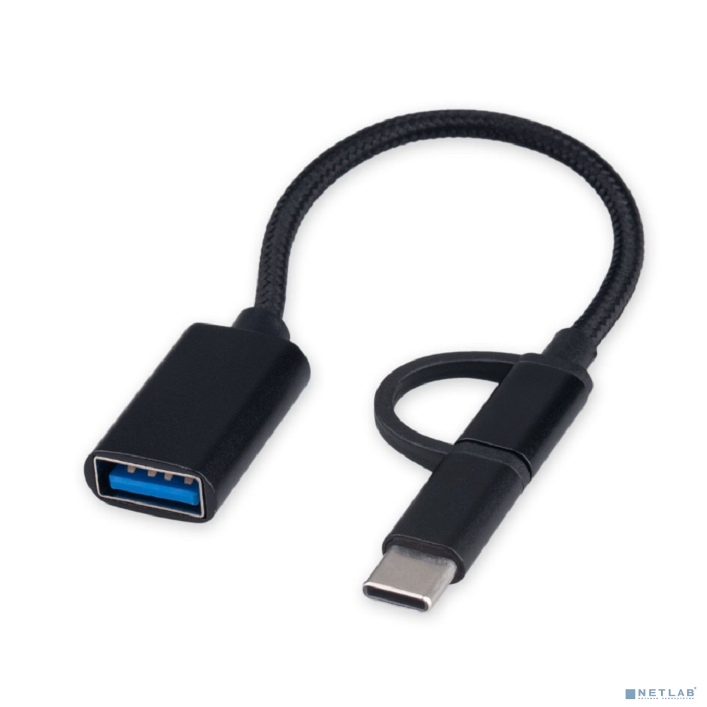 Cablexpert Кабель-переходник USB2.0 OTG Type-C(M)+MicroUSB(M)/AF, алюминий+нейлон оплетка, 0.15м (A-OTG-CMAF2-2in1)