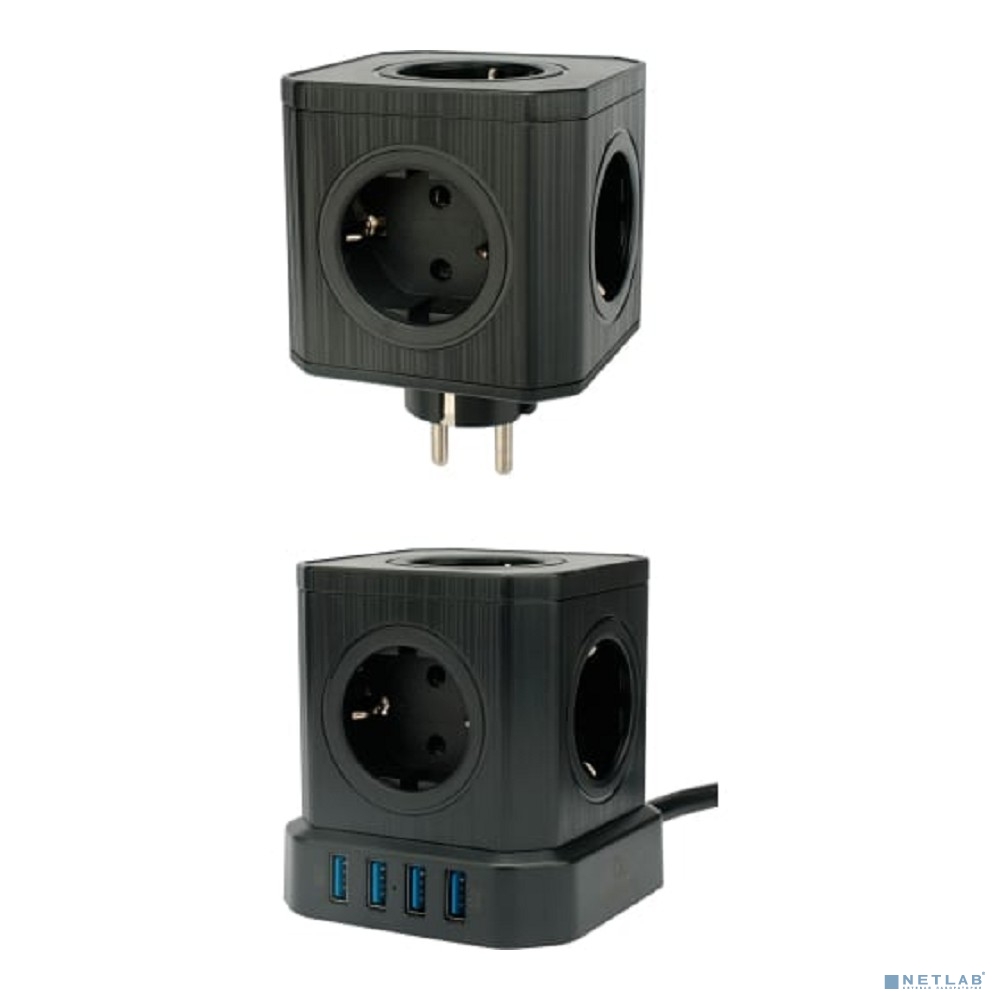 Cablexpert Сетевой фильтр Tower TWR-9-U4-B-2 (9р, 16А, 4 х USB, 3.1А, 2м, ур.защиты 4+) черный, коробка