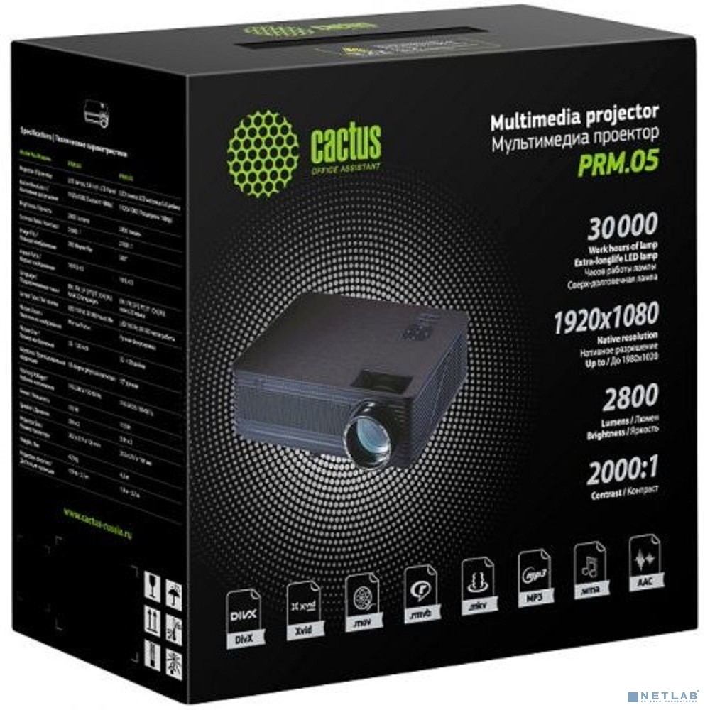 Cactus CS-PRM.05B.WUXGA-A Проектор {LCD 2800Lm (1920x1080) 2000:1 ресурс лампы:30000часов 2xUSB typeA 2xHDMI 4.2кг}