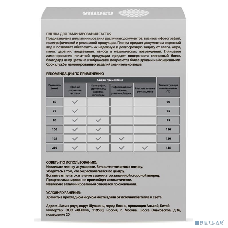 Пленка CS-LPG80111125 от компании Cactus