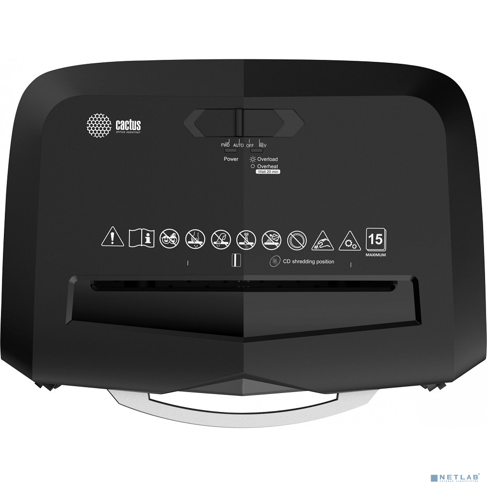 Cactus Шредер CS-SH-15-20-4X35 черный/серый (секр.P-4) перекрестный 15лист. 20лтр. скрепки скобы пл.карты CD (919851)