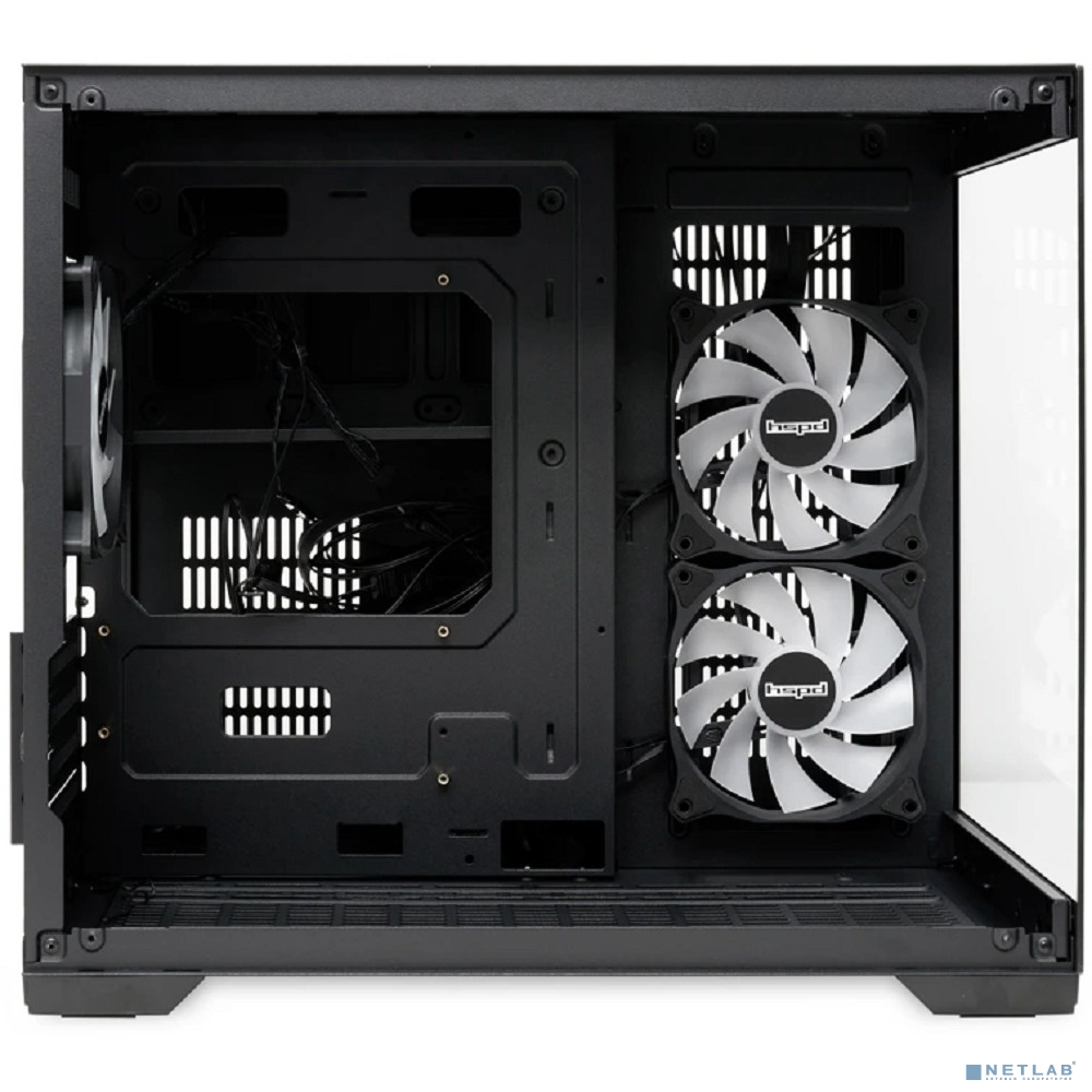 Case HSPD F330, Panoramic Mini-tower, Black, TG, 0.5 SPCC, 3x120mm ARGB (FN027) mATX, mITX 160/400/200mm 1x2.5", 2x3.5", 4xPCI 1xUSB-C 3.0, 2xUSB-A1.0 428x280x375mm
