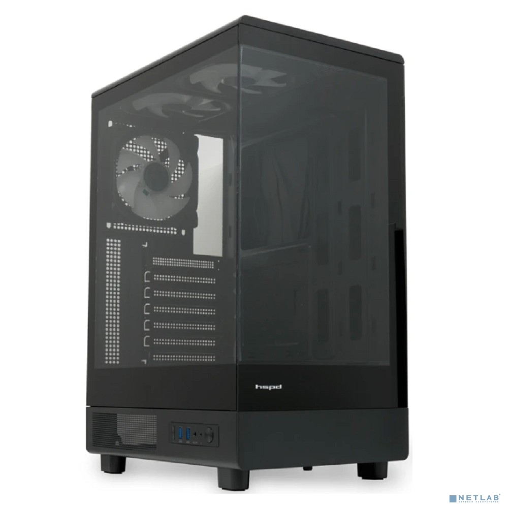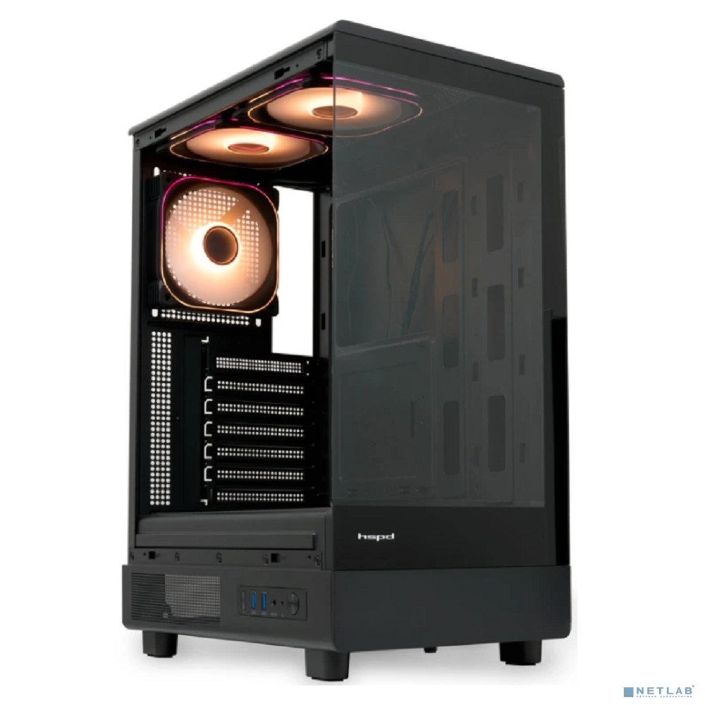 Case HSPD F510, Panoramic Mid Tower, Black, TG, 0.5 SPCC, 3x120mm ARGB (Orbis F1) ATX, mATX, mITX 180/280/160mm 1x2.5", 1x3.5", 7xPCI 2xUSB-A 3.0 356x218x467mm