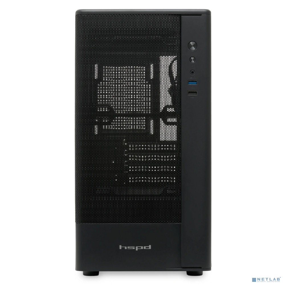 Case HSPD M332, Mesh Mini-tower, Black, TG, 0.4 SPCC, no fans, mATX, mITX, 160/285/170mm, 1x2.5", 1x3.5", 4xPCI, 1xUSB-A 3.0, 1xUSB-A 1.0, 387x197x325mm