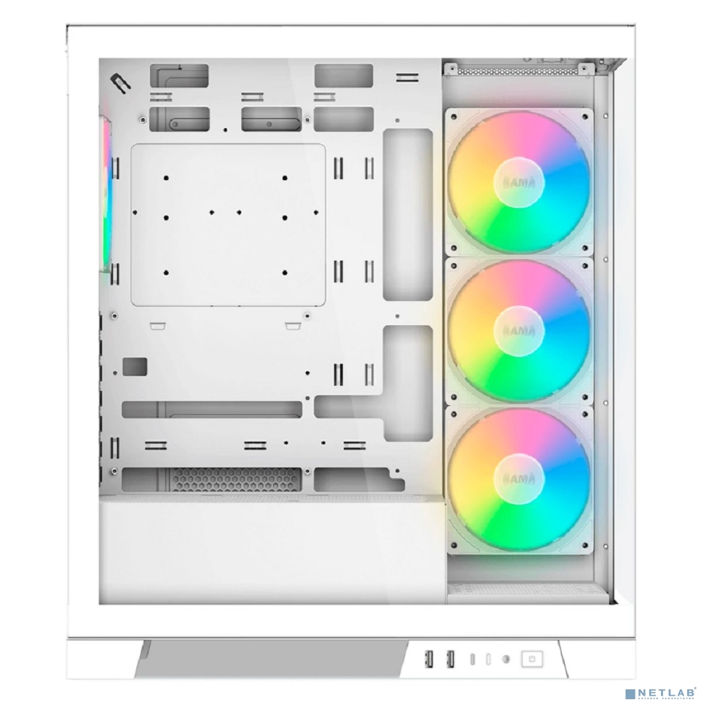 Case SAMA V50 White, Midi-Tower, TG, 4x120mm ARGB, 2xUSB 3.0 + 1xUSB 3.1 Type-C, ATX, mATX, mITX White