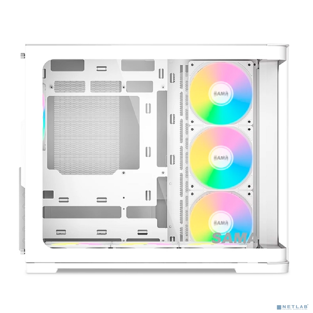 Case SAMA V60 White, Midi-Tower, TG, 7x120mm ARGB, 2xUSB 3.0 + 1xUSB 3.1 Type-C, ATX, mATX, mITX White