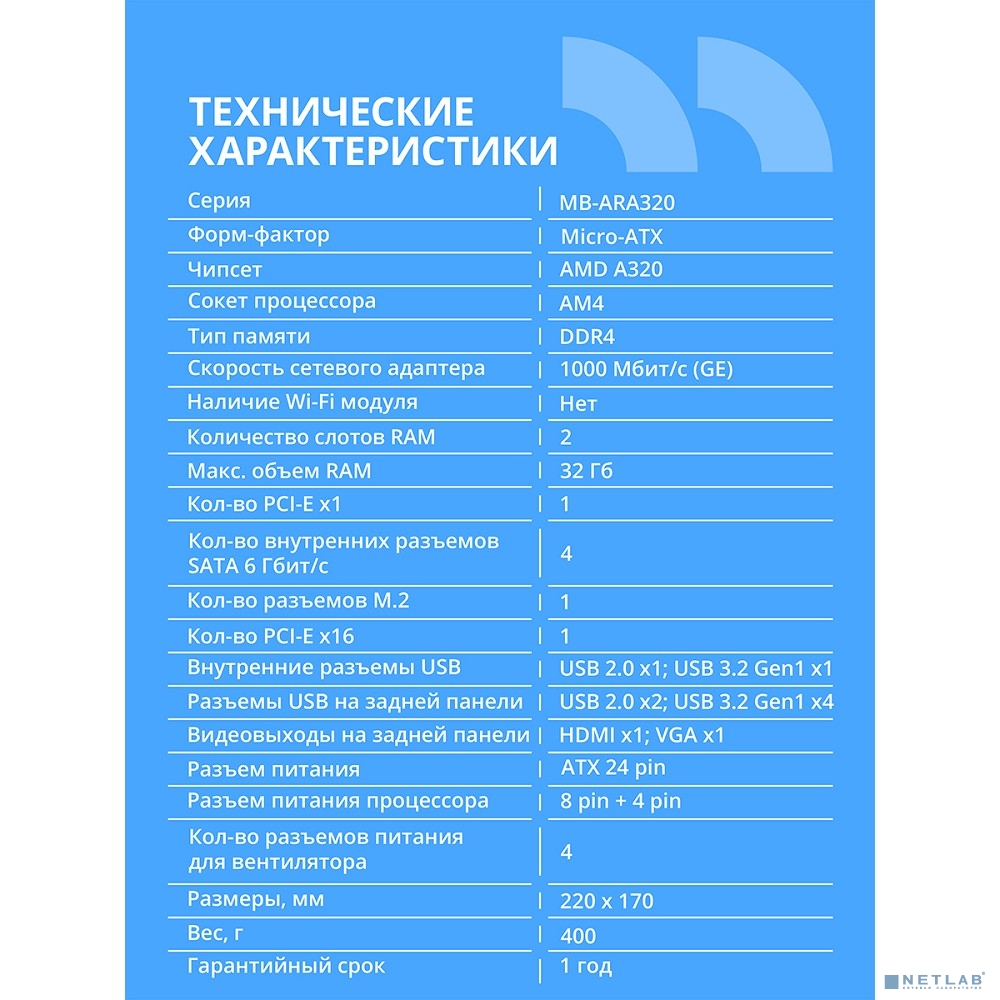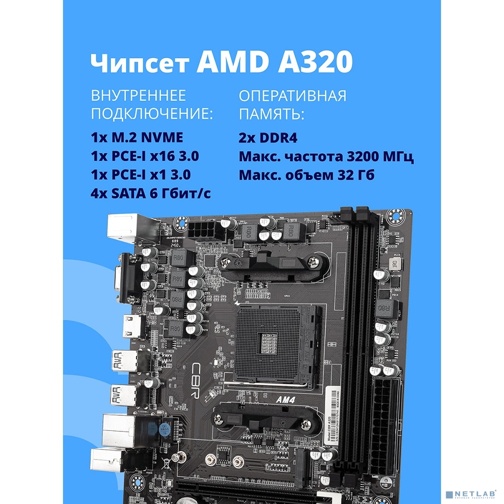CBR A320 OEM { Chipset A320, Socket AM4, 2*DDR4, mATX, VGA+HDMI, 1*PCIEx16,1*PCIEx1, 1*M.2(NVME), 4*SATA3, 2*USB2.0 + 4*USB3.0, LAN 1Gb} OEM УПАКОВКА