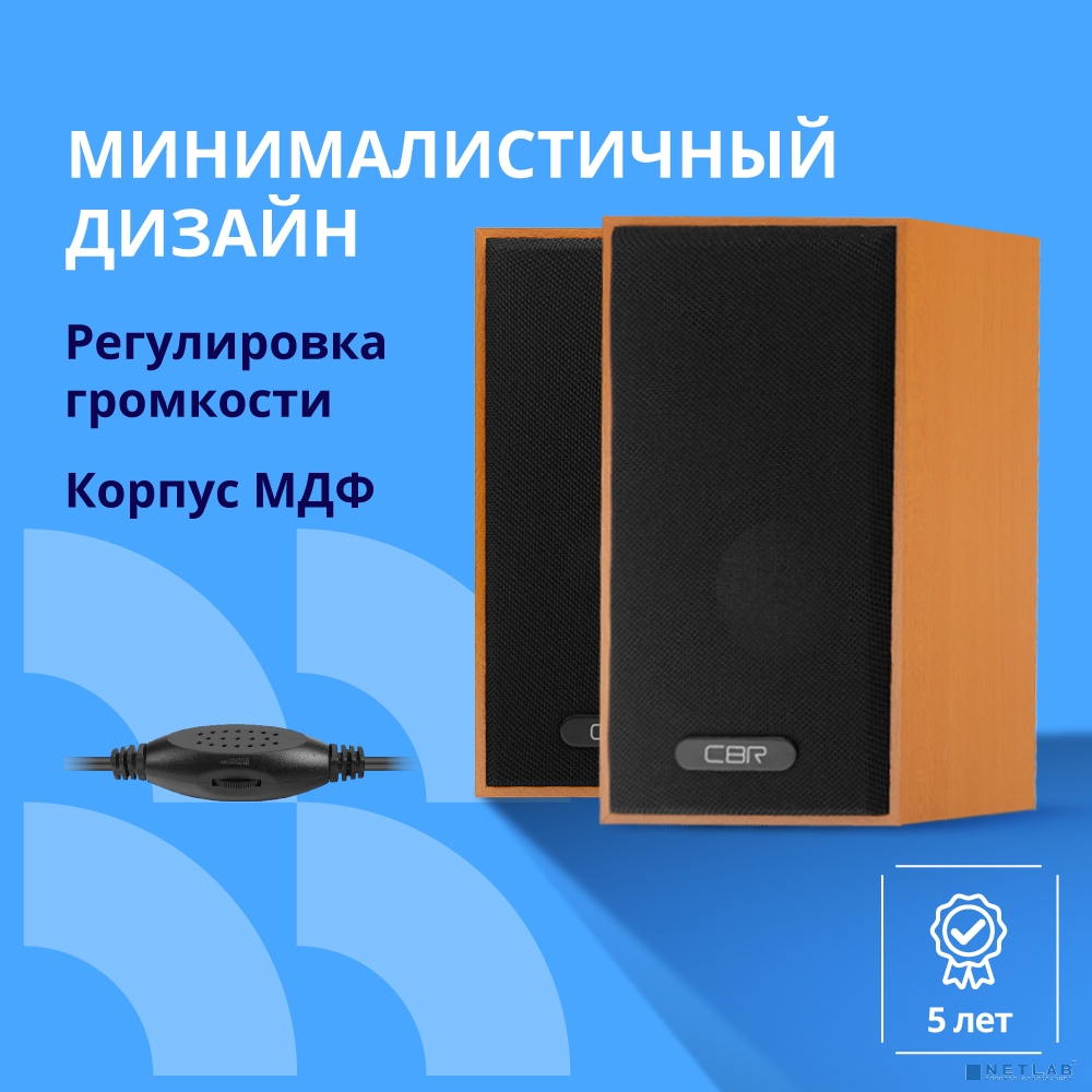 CBR CMS 635 Brown, Акустическая система 2.0, питание USB, 2х3 Вт (6 Вт RMS), материал корпуса MDF, 3.5 мм линейный стереовход, регул. громк., длина кабеля 1 м, цвет светло-коричневый