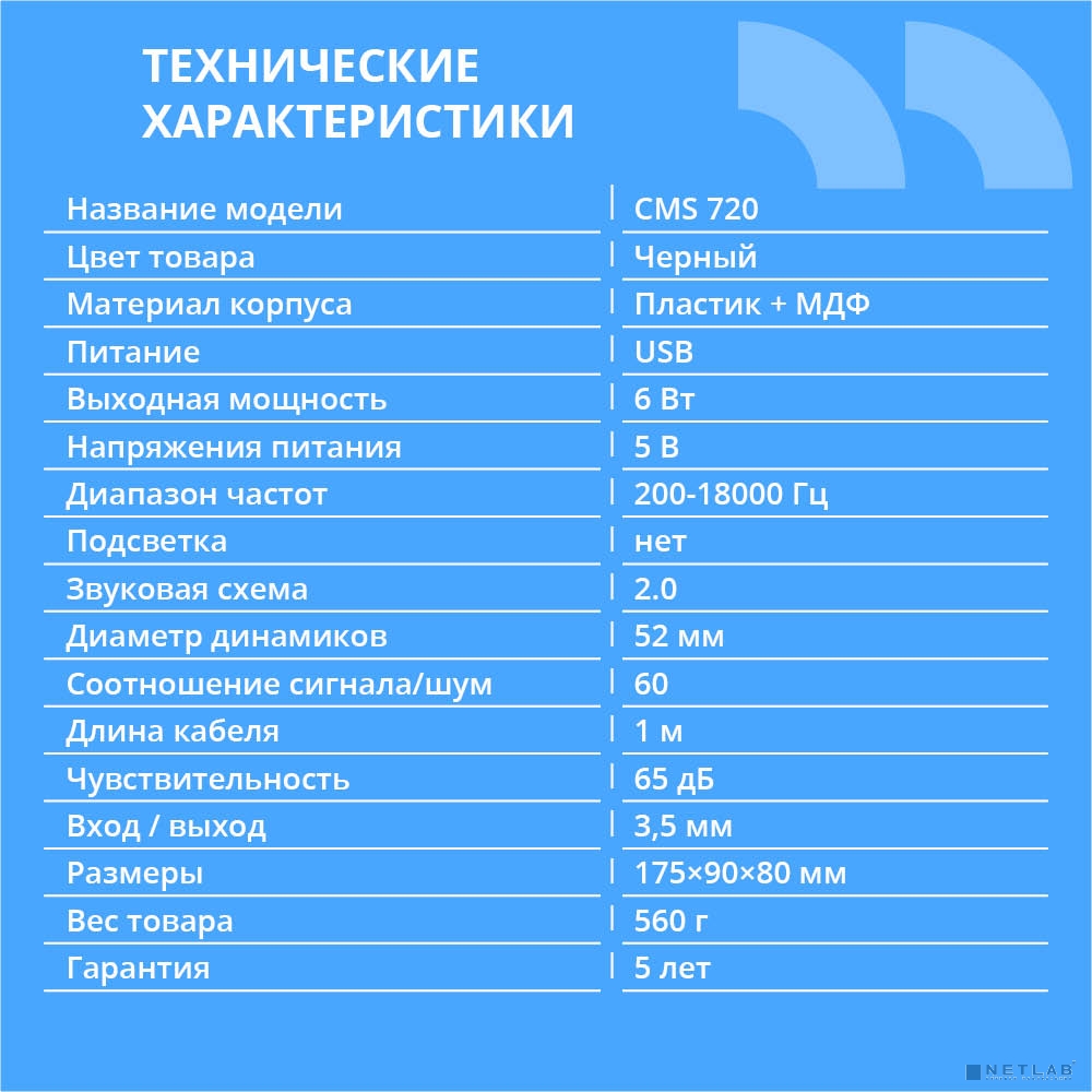 CBR CMS 720, Акустическая система 2.0, питание USB, 2х3 Вт (6 Вт RMS), материал корпуса пластик, 3.5 мм линейный стереовход, цвет чёрный