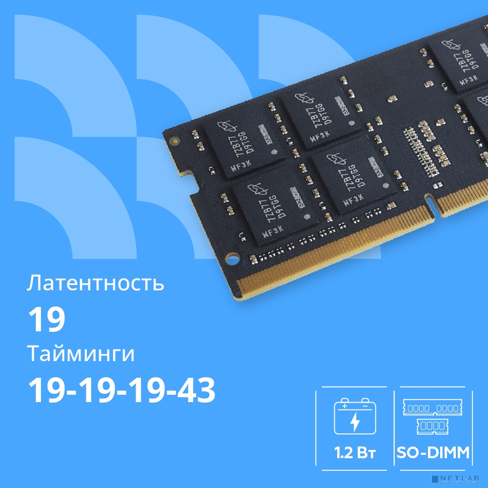 Напряжение питания модуля составляет всего 1,2 В, что делает его энергоэффективным решением для ноутбуков. Память совместима с большинством современных систем и обеспечивает стабильную работу в различных условиях нагрузки.