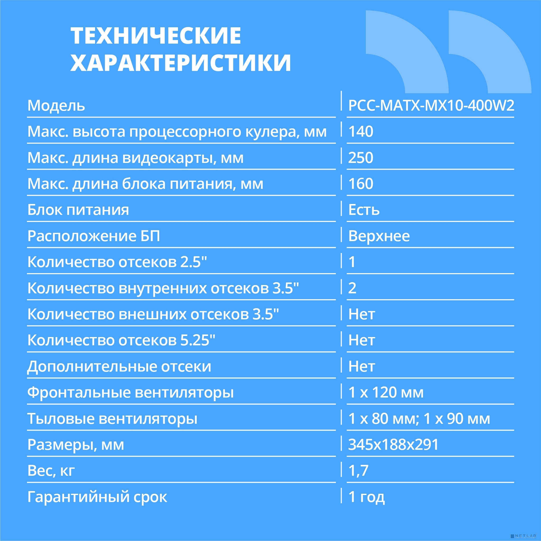 CBR Корпус mATX Minitower MX10, c БП PSU-ATX400-08EC (400W/80mm), 2*USB 2.0, HD Audio+Mic, Black [PCC-MATX-MX10-400W2]