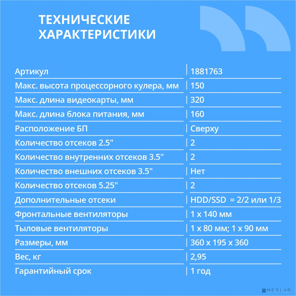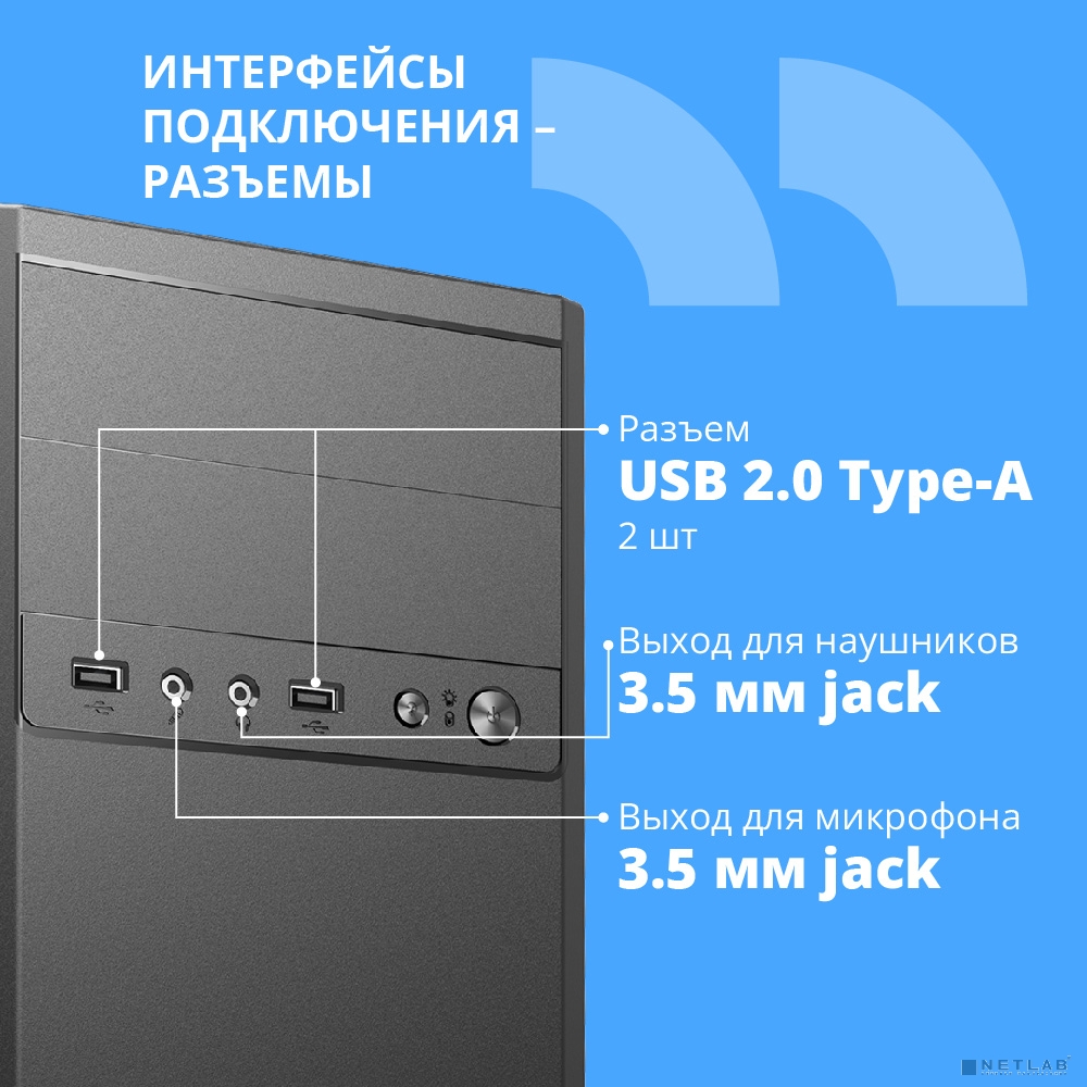 CBR Корпус mATX Minitower RD873, c БП PSU-ATX450-12EC (450W/120mm), 2*USB 2.0, HD Audio+Mic, кабель питания 1.2м, Black [PCC-MATX-RD873-450W]
