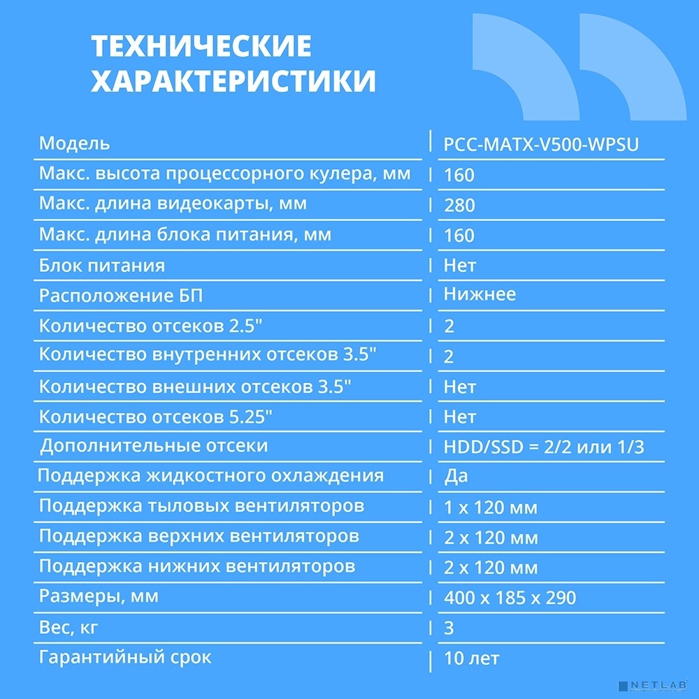 возможность установки системы жидкостного охлаждения, окно на боковой стенке