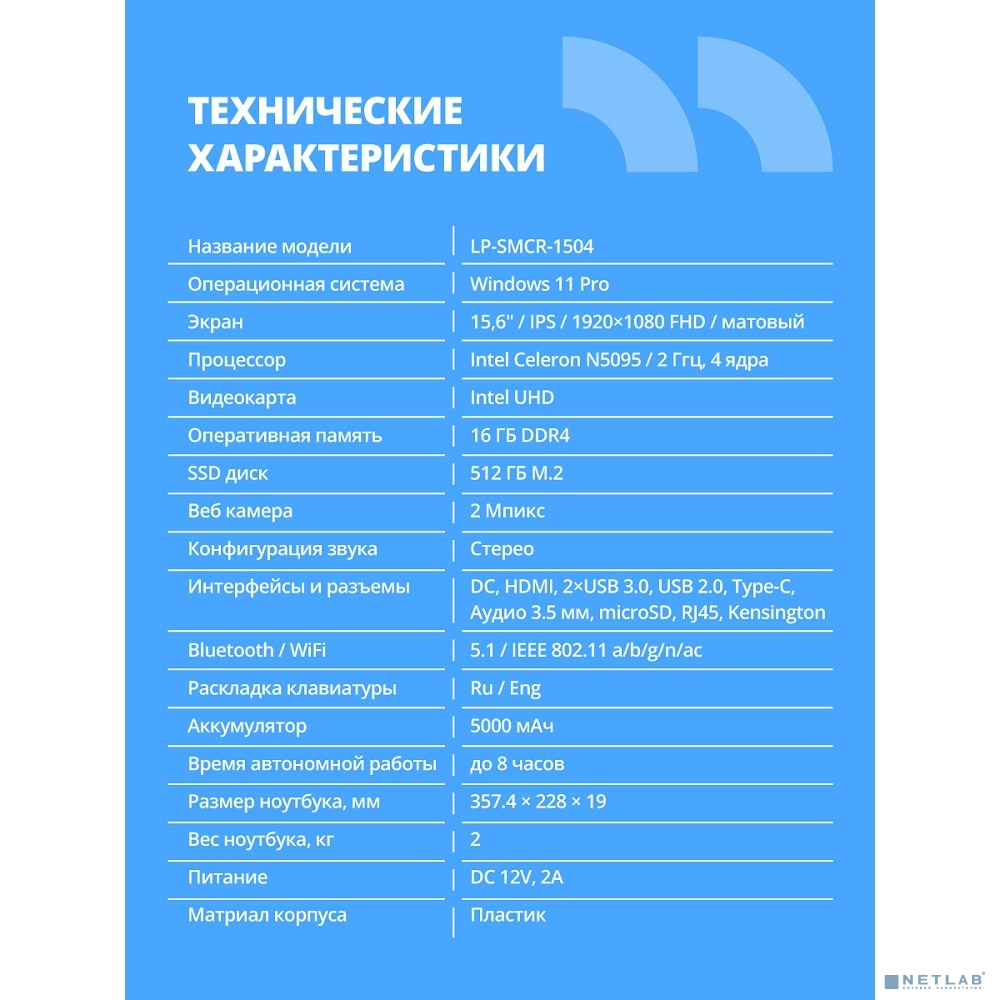 CBR LP-SMCR-1504 15.6" FHD IPS (Intel Celeron N5095(2GHz) /16Gb DDR4 / 512Gb M.2 SSD / Intel UHD Graphics / RJ45 / Windows 11 Pro /4800mAh /пластик)