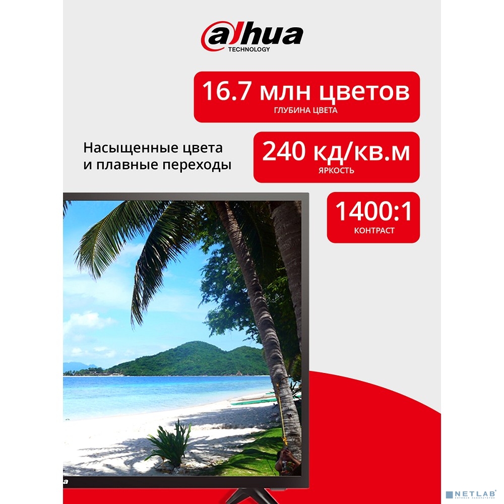 Dahua DHI-LM32-F200 31.5"; (16:9) FillHD 1920x1080; VA; VESA 75x75; 240кд/кв.м; 60Гц; 1 HDMI; 1 VGA; Встроенные динамики 2(8Вт); 1 USB