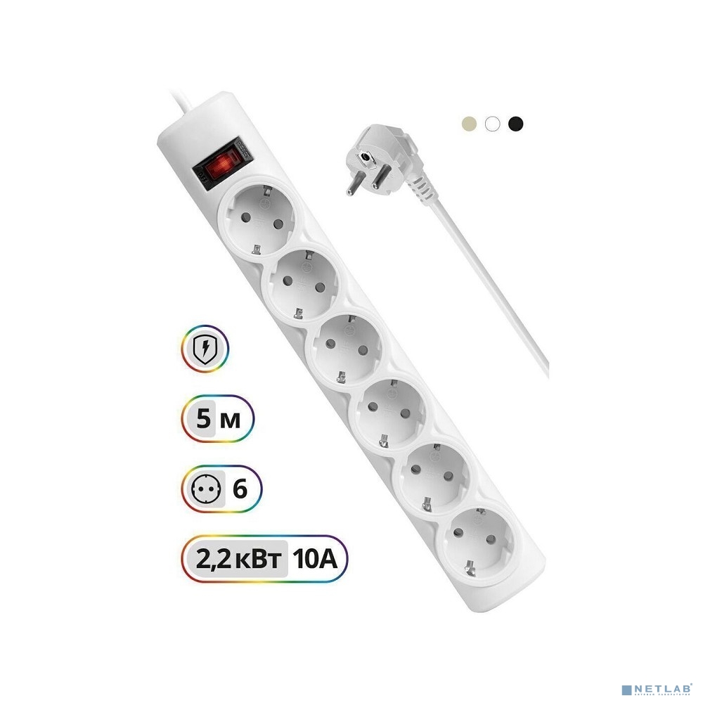 Сетевой фильтр имеет 6 розеток евростандарт, защищает электронную технику от короткого замыкания, перегрузок по току и импульсных помех;