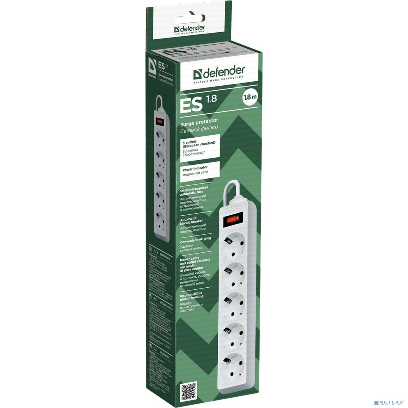 Defender Фильтр ES, 1.8м Коробка 5 розеток белый
