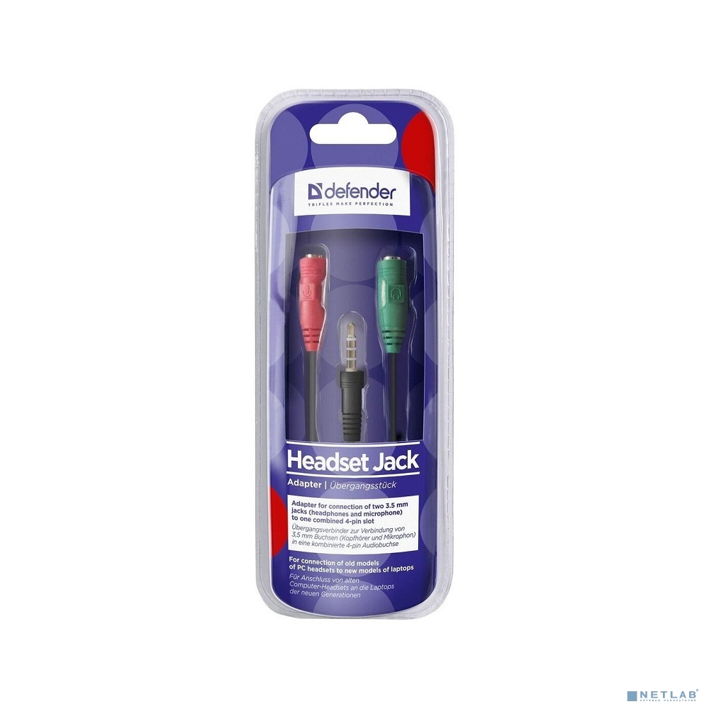 Defender Переходник Headset Jack 2*3.5jack—3.5 4pin jack 0,15м (63012)