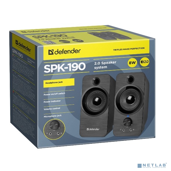 Акустическая 2.0 система Defender SPK-190 черный, 8 Вт, питание от USB