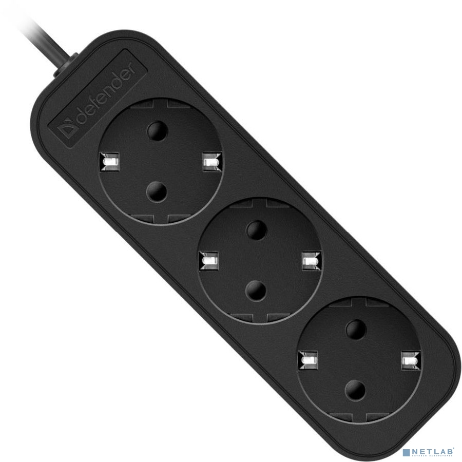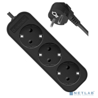 Defender Удлинитель M330 3.0 м, 3 розетки, черный ,с заземлением