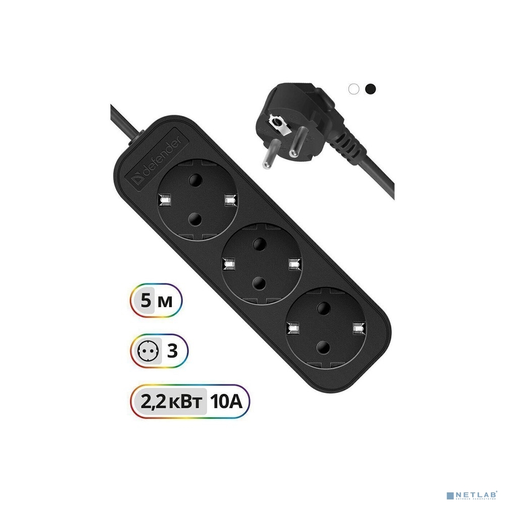Defender Удлинитель M350 5.0 м, 3 розетки , с заземлением