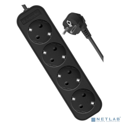 Defender Удлинитель M418 1.8 м, 4 розетки, черный ,с заземлением
