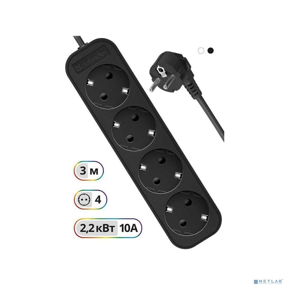 Defender Удлинитель M430 3.0 м, 4 розетки , с заземлением