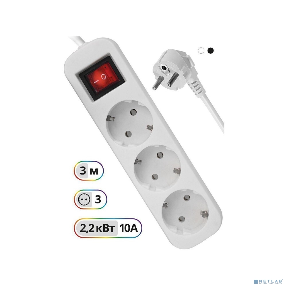 Defender Удлинитель S330 3.0 м, 3 розетки выключатель, с заземлением