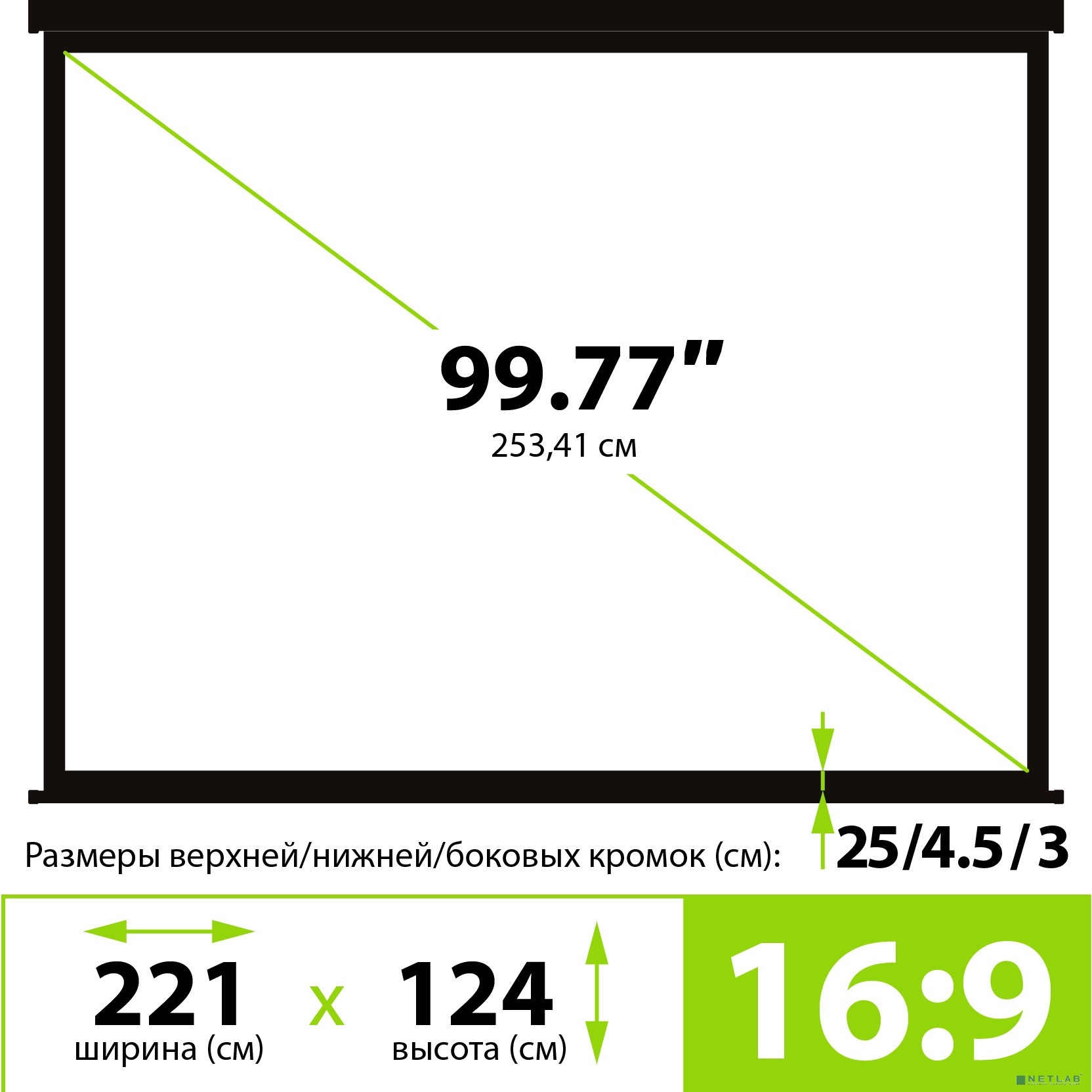 Экран Cactus Wallscreen CS-PSW-124X221-BK, 221х124.5 см, 16:9, настенно-потолочный черный