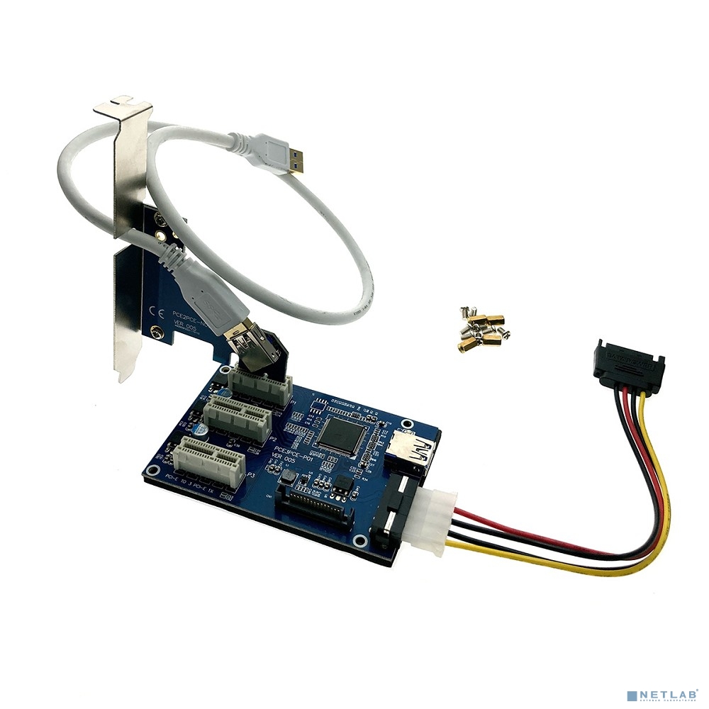 PCI-E 1X адаптер,PCI-E 1X riser плата,USB3.0 кабель,Кабель Molex 4pin – POWER SATA 6pin,крепеж