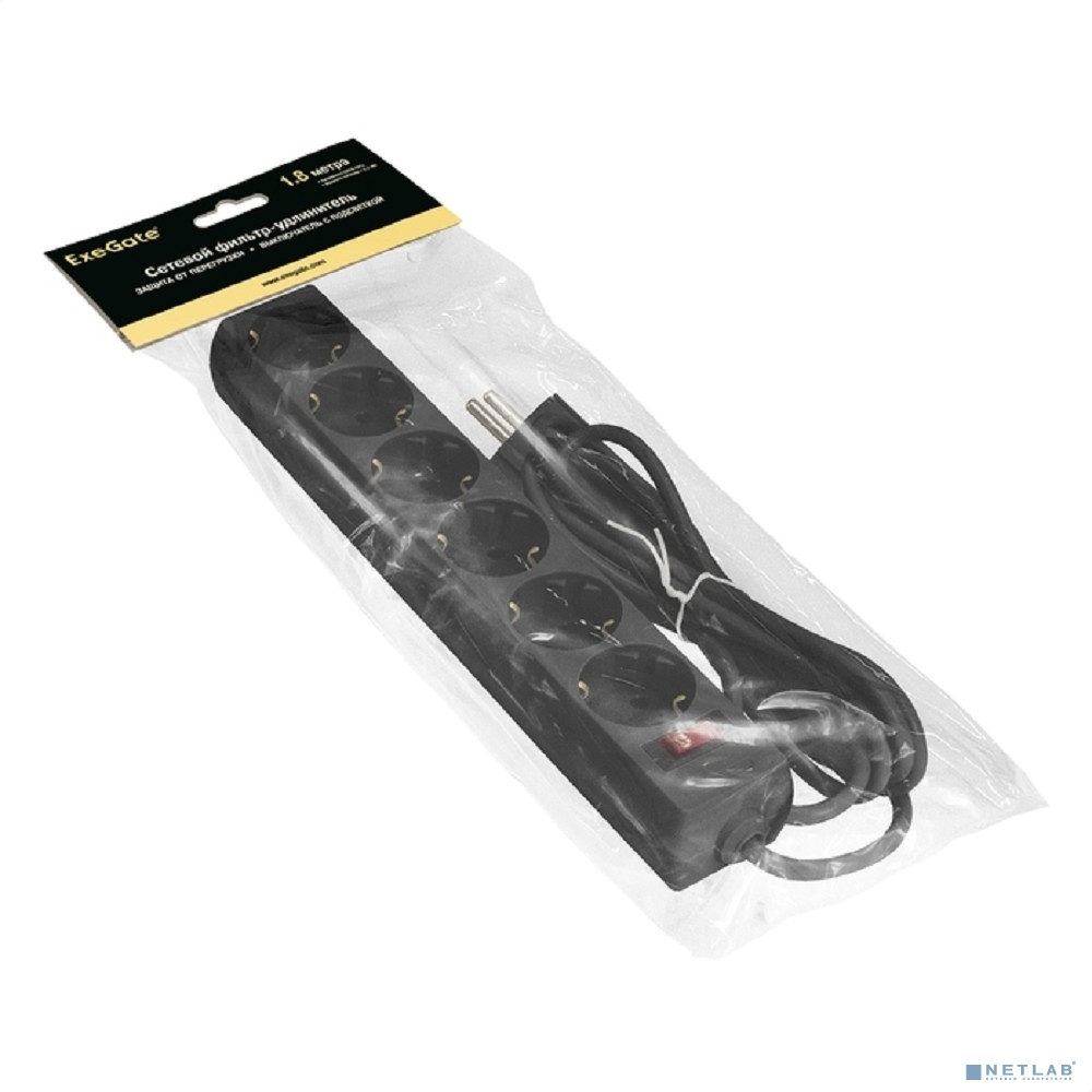 Exegate EX119391RUS Сетевой фильтр Exegate SP-6-1.8B (6 розеток, 1.8м, евровилка, черный)
