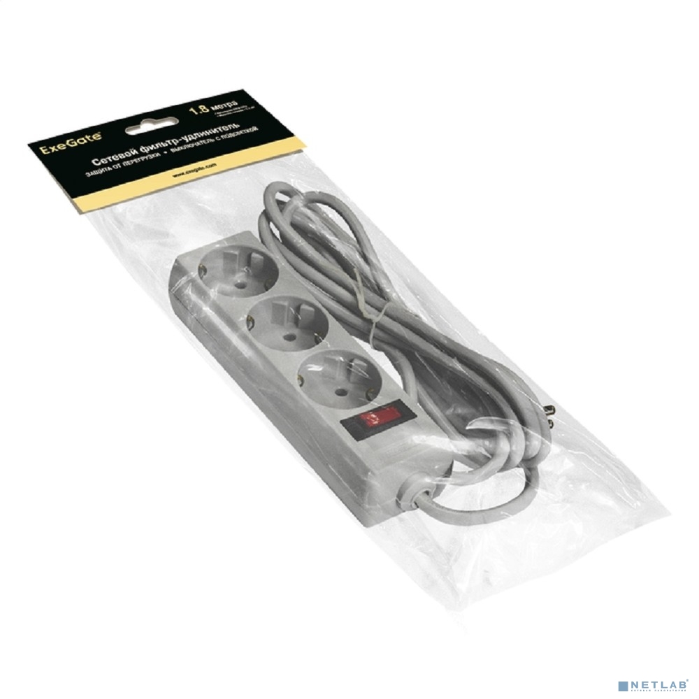 Exegate EX221177RUS Сетевой фильтр Exegate SP-3-1.8G (3 розетки, 1.8м, евровилка, серый)