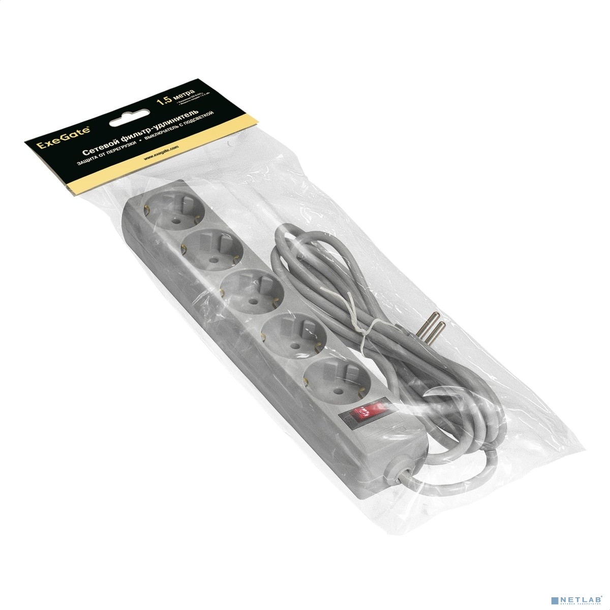 Exegate EX266862RUS Сетевой фильтр Exegate SP-5-1.5G (5 розеток, 1.5м, евровилка, светло-серый)
