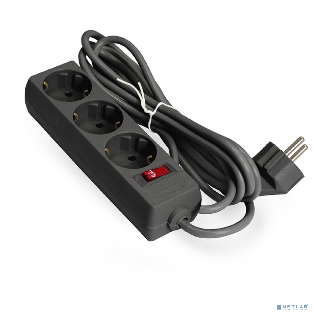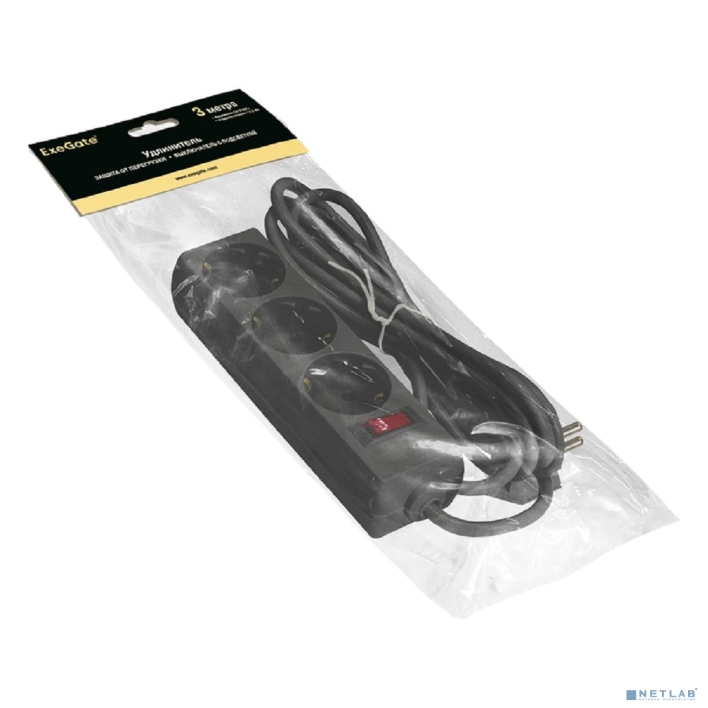 Exegate EX279351RUS Удлинитель ExeGate EC-3-3B (3 розетки, 3м, евровилка, черный)