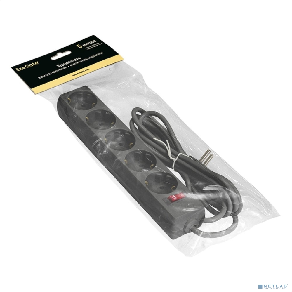 Exegate EX279358RUS Удлинитель ExeGate EC-5-5B (5 розеток, 5м, евровилка, черный)