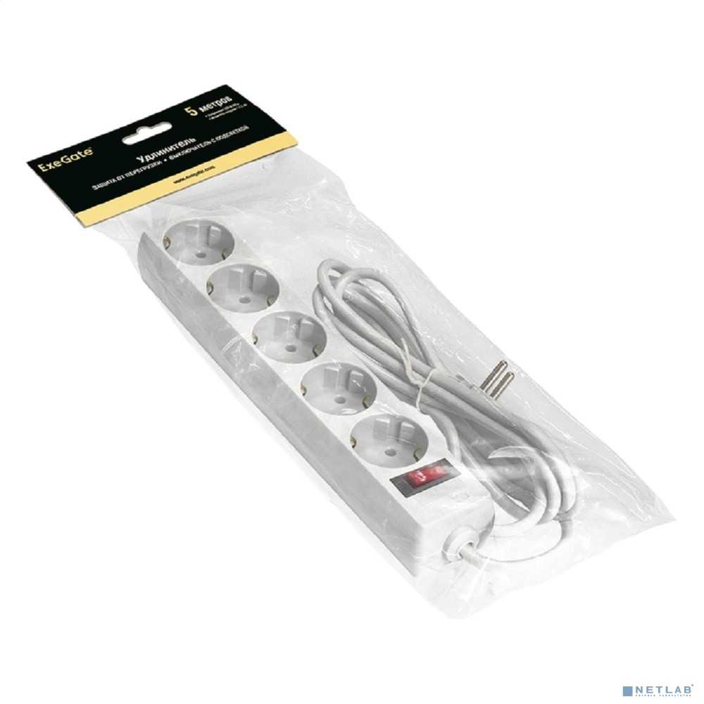 Exegate EX279359RUS Удлинитель ExeGate EC-5-5W (5 розеток, 5м, евровилка, белый)