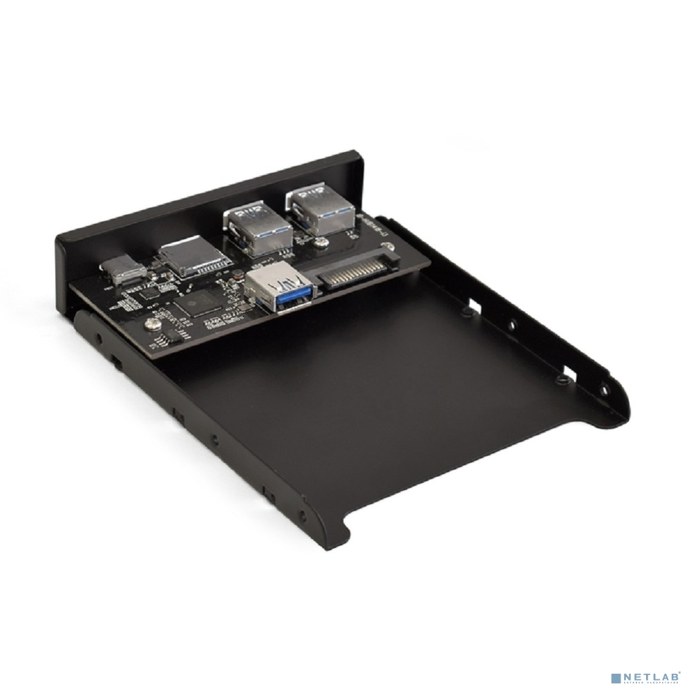 Exegate EX283578RUS Планка USB на переднюю панель ExeGate U3H-621, 3,5", 2*USB3.0+1*TypeC+1*SD+TF card, черная, металл, подсоединение к мат. плате
