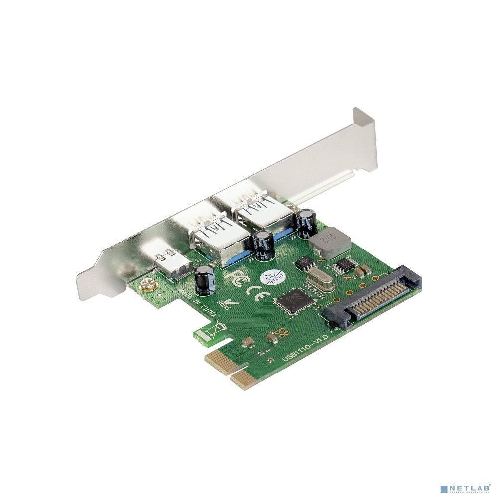 Exegate EX283719RUS Контроллер EXE-323 PCI-E 2.0, 2*USB3.0 ext + 1*Type-C, разъем доп.питания (OEM)
